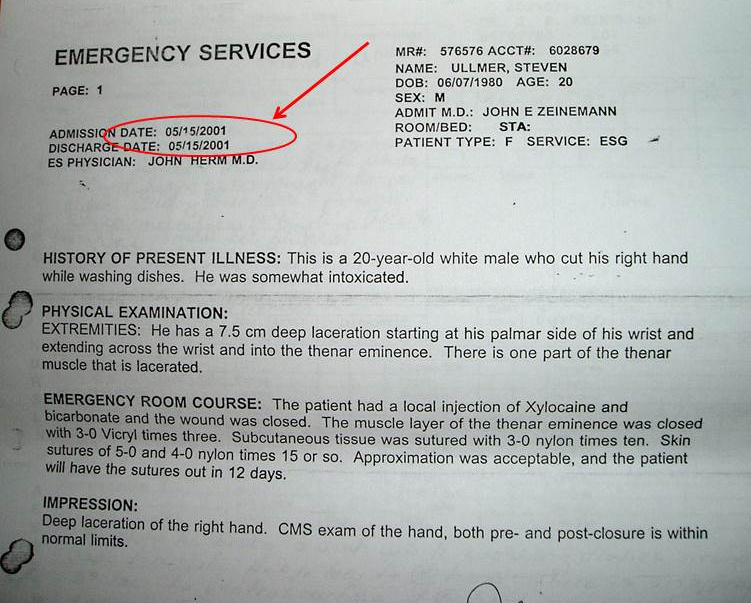 Hospital Report – Hand Injury – May 15, 2001
